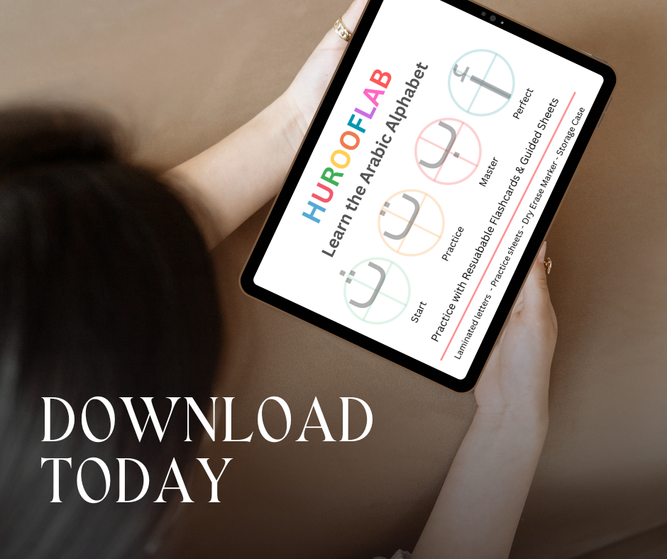 The Hurooflab Digital Download gives you instant access to our complete Arabic alphabet learning system in printable PDF format. Perfect for families who want to print multiple copies, teachers outfitting entire classrooms, or international customers who want to start learning immediately.
